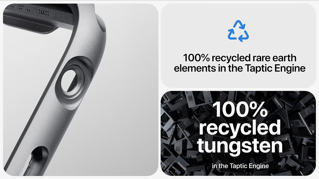 Apple sử dụng 100% nhôm tái chế nhằm "Bảo vệ môi trường", việc này được họ Apple trên nhiều sản phẩm rồi. Thường là các thiết bị cũ sẽ được tái chế lại để sản xuất chất liệu cho thiết bị mới.