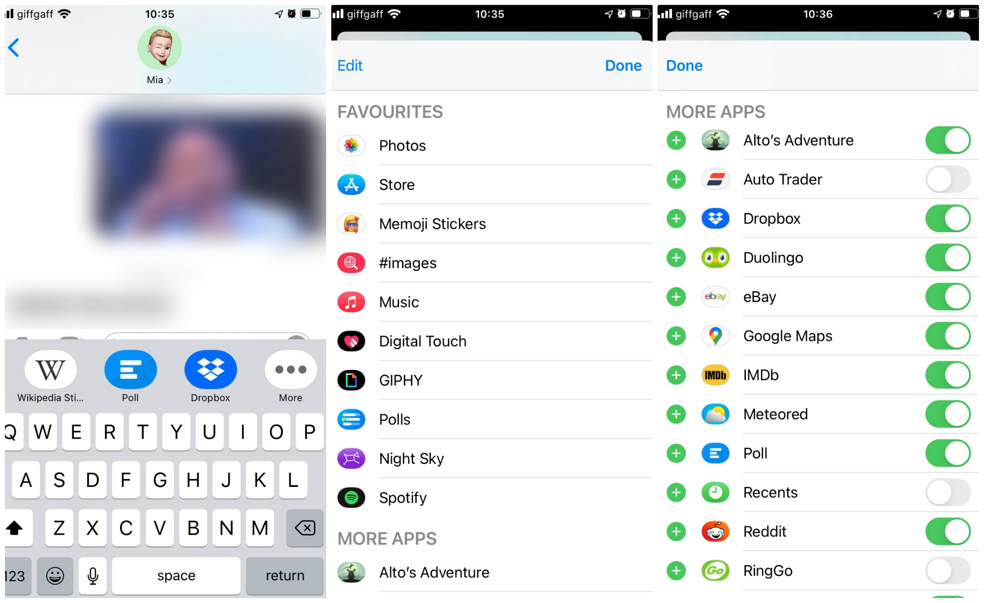 Có rất nhiều ứng dụng hiển thị toàn màn hình bao gồm cả ứng dụng iMessage. Bạn có thể kích hoạt hoặc vô hiệu hóa những ứng dụng đó từ trang Edit. Phần này rất hữu ích đối với những gói nhãn dán hoặc những ứng dụng bạn không cần dùng đến.