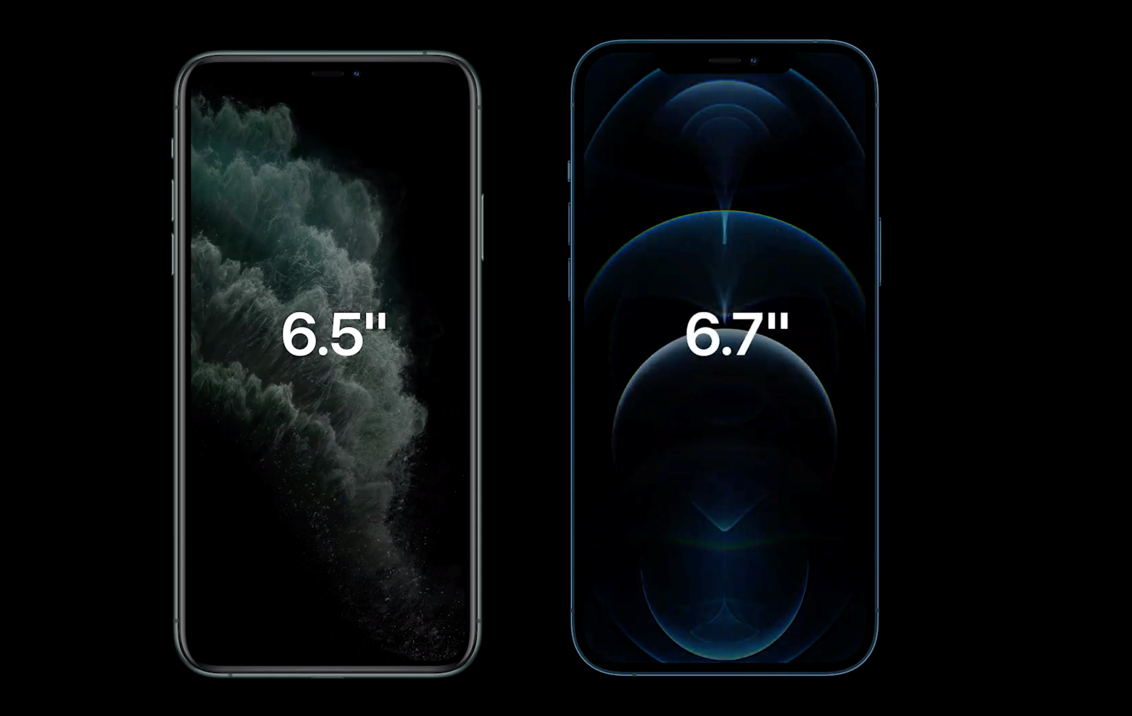Cả iPhone 12 Pro và iPhone 12 Pro Max đều được nâng cấp về kích thước màn hình. Màn hình của iPhone 12 Pro có kích thước 6.1 inch (so với 5.8 inch của iPhone 11 Pro), và iPhone 12 Pro Max là 6.7 inch (so với 6.5 inch của iPhone 11 Pro Max).
